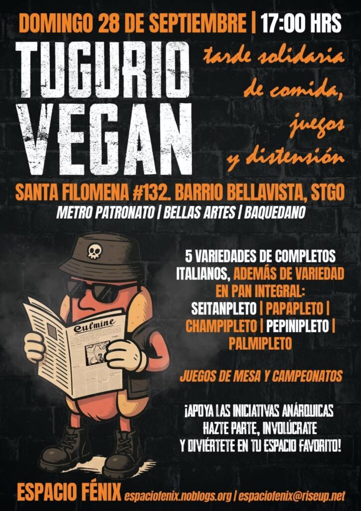 A quienes valoran y se involucran de una u otra manera con este espacio anárquico activo hace ya 4 años. Les extendemos la invitación a una nueva instancia de autofinanciamiento a través del ocio y la comilona libre de explotación animal.